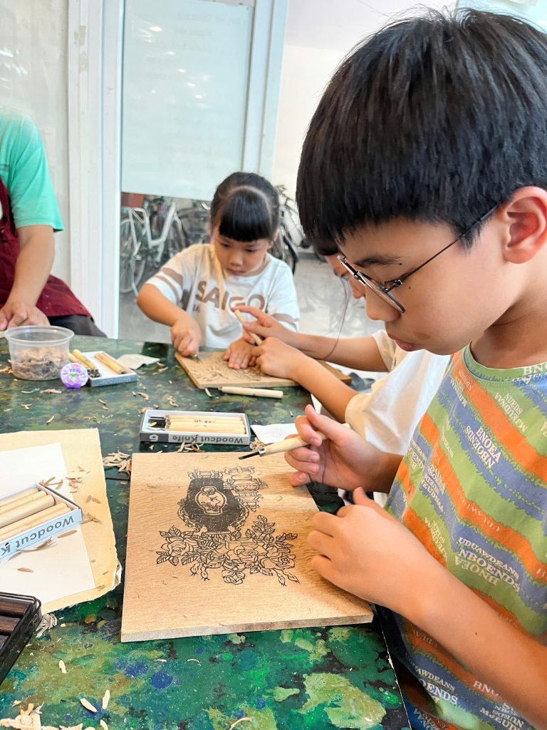Workshop khắc gỗ không chỉ dành cho người lớn yêu thích mỹ thuật và văn hóa dân gian, mà còn chào đón các em nhỏ cùng tham gia trải nghiệm.